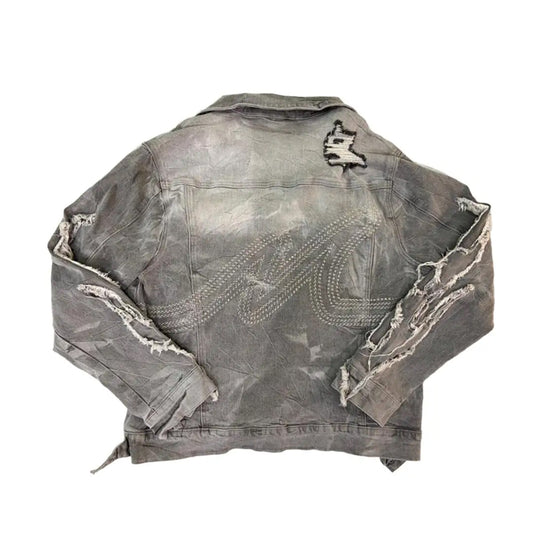 Premium Milano Mens Applique Flame Denim Jacket PM007F25-118JKT Gray Wash