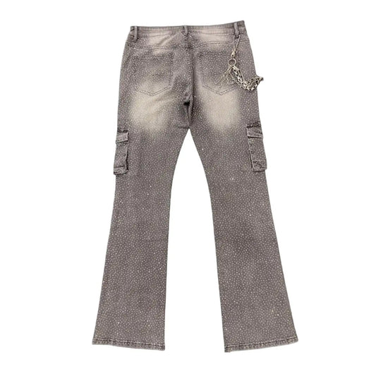 Premium Milano Mens Cargo Pocket Rhinestone Stacked Cargo Jeans PM002F25-118 Gray Wash