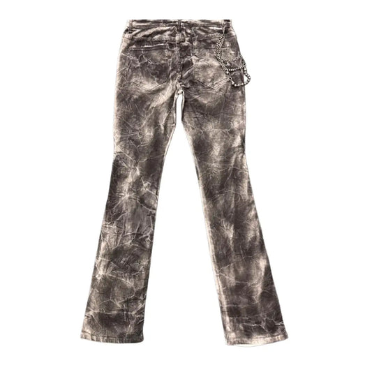 Premium Milano Mens Tiger Strip Black Stone Stacked Flare Jeans PM004F25-100 Black Wash